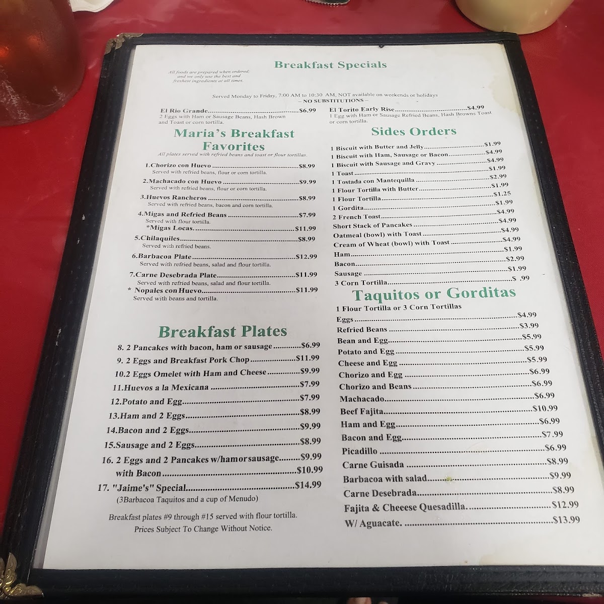 Introducing the menu at Mi Torito, a delightful culinary oasis located in Brownsville, TX, where every dish resonates with authentic flavor and heartfelt preparation. Renowned for their homemade flour tortillas, the restaurant offers a diverse array of breakfast favorites that are sure to tantalize your taste buds.